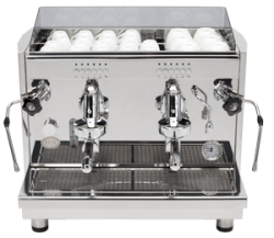 The ECM Manufacture Barista A2 is a compact 2 group commercial heat exchanger machine featuring a large (14 l copper boiler), polished stainless steel panels , and ECM’s patented brew group technology.